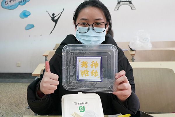 浙师大各食堂还供应了状元糕和“逢考必胜”版纸杯蛋糕,为考生加油。