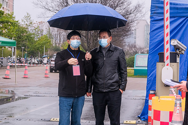 开考前,浙师大党委副书记朱坚赴各点检查防疫工作。浙师大融媒体中心记者 应琳歆 摄