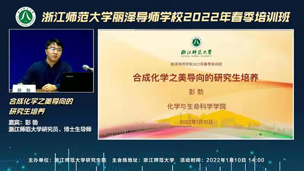 浙师大博士生导师彭勃教授、邱江宁教授分别以《合成化学之美导向的研究生培养》《且式且范,教学相长——谈谈我与研究生的相处之道》为题,为参加培训的研究生导师们分享研究生人才培养经验。