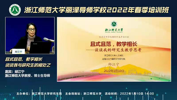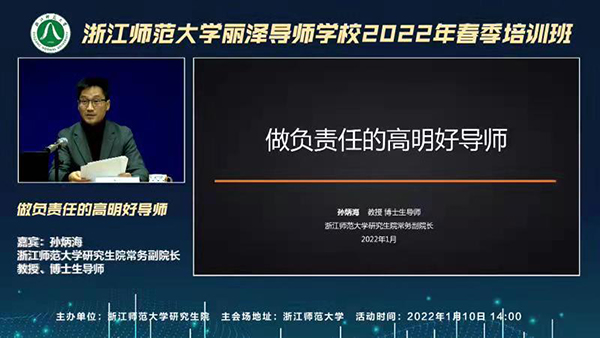 为全面落实导师是研究生培养第一责任人要求,努力建设一支师德高尚、学识深厚、治学严谨、指导有方的高素质研究生导师队伍,1月10日,浙师大于线上召开丽泽导师学校第三期导师培训会。浙师大副校长钟依均出席会议并致辞。浙江省学位办主任吕华来电表示祝贺,并对浙师大新时代导师专业成长提出了殷切希望。