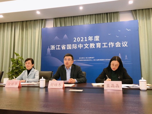 1月13日,2021年度浙江省国际中文教育工作会议在线举办。中国国际中文教育基金会副理事长、秘书长赵灵山,浙江省教育厅专职副总督学舒培冬出席会议并致辞。浙江师范大学党委书记、浙江省教育国际交流协会会长蒋国俊,全省23所孔子学院中方合作高校和汉语国际教育专业开设高校分管校领导、国际处主要负责人等近百位代表参会。会议由浙江省教育厅国际处处长蓝晶晶主持。