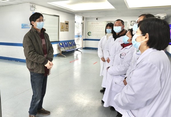每到一处,蒋国俊一行和值班人员亲切交谈,详细了解假期相关工作安排,感谢他们舍小家、顾大家,为营造安全健康的校园环境所作的贡献。蒋国俊表示,希望大家继续发扬奋斗精神和奉献精神,站牢、站好春节期间的岗位,同时要注意加强自身防护,切实做好寒假期间的各项保障工作。
