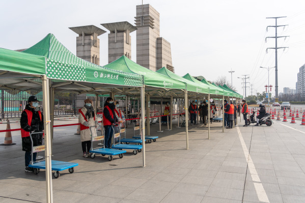 为了方便同学们返校,浙师大在火车金华站、金华南站安排接站车辆,上车前核验返校码、健康码、行程码、测体温,直接将学生送达各个公寓门口。除此之外,校门口还安排志愿者帮助返校同学搬运行李等物品。
