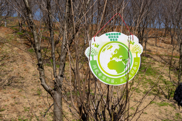植树之余,不少学院还定制了最具学院特色的指示牌,挂在种好的树苗上,上演了一场创意大秀。物理与电子信息工程学院的标识牌上写着“同栽希望新苗,共享美好春日”,流露出“以苗化人”的美好愿景。马克思主义学院则结合鲜明的学科特点,冠名自己的树苗为“哲思树”,在漫步自然时增添浓郁的哲学气息。