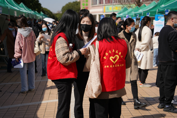 工学院的应届毕业生张敏表示自己还是更倾向于事业编制,未来打算做一名老师,目前已经给义乌工商职业技术学院投递了简历。“浙师大这次线下招聘会是一次能很好了解岗位信息的机会,相较于线上的招聘,我们可以在现场近距离深入了解这些岗位。”