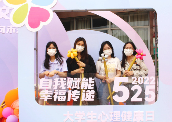“快来一起打卡拍照呀!”“哇,今天的朋友圈有素材了。”在大学生活动中心门口,“自我赋能 幸福传递”的主题相框吸引了同学们纷纷驻足打卡拍照。