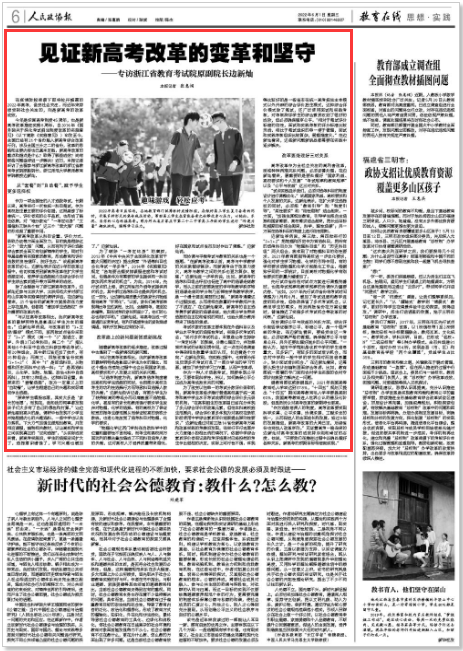 近日,《人民政协报》专访浙江省教育考试院原副院长、浙江师范大学教师教育学院教授边新灿,围绕新高考改革的相关话题进行探讨。新高考改革的重点和难点是什么?取得了哪些成效?尚有哪些问题亟待进一步解决?《见证新高考改革的变革和坚守》这篇专访给出了解答。