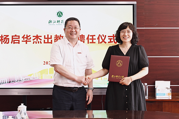 6月14日下午,杨启华杰出教授聘任仪式在浙江师范大学行政中心举行。浙师大校长郑孟状、副校长张根福出席会议。