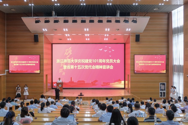 浙师大庆祝建党101周年党员大会暨省第十五次党代会精神宣讲会现场。 浙师大融媒体中心 陈小备 摄