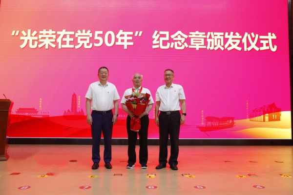浙师大党委书记蒋国俊、校长郑孟状为“光荣在党50年”党员颁发纪念章。 浙师大融媒体中心拍友 吴伟琪 摄