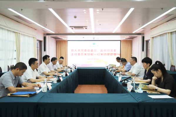 7月16日上午,省人大常委会委员、监察司法委主任委员朱恒毅,省人大监察司法委副主任委员、常委会监察司法工委副主任、办公厅一级巡视员郑军一行来浙江师范大学考察调研,并召开座谈会。省人大监察司法委副主任委员、浙江师范大学校长郑孟状,金华市人大常委会副主任金文胜陪同考察。
