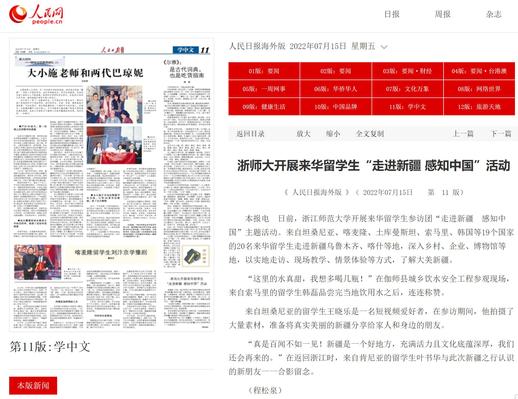 截止日前,浙师大留学生“走进新疆 感知中国”活动引发国内媒体广泛报道:《人民日报》《光明日报》《中国青年报》、新华网、光明网、中新社、新疆日报、新疆卫视等重磅媒体纷纷报道。同时,活动在海外媒体平台产生持续影响,中国国际电视台CGTN英文频道、CGTN法语频道等连线参访团留学生,向大家讲述自己眼中真实美丽的新疆。