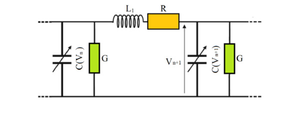 图3: 由线性电容C2连接的多耦合耗散型NLTN的一个片段