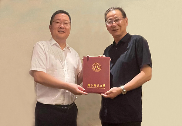8月12日下午,澳门教业中学校长贺诚客座教授受聘仪式举行,浙江师范大学党委书记、校长郑孟状教授出席聘任仪式,并为贺诚颁发聘书。