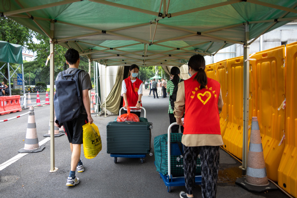 学校安排志愿者帮助学生搬运行李。浙师大融媒体中心 李丰成 摄