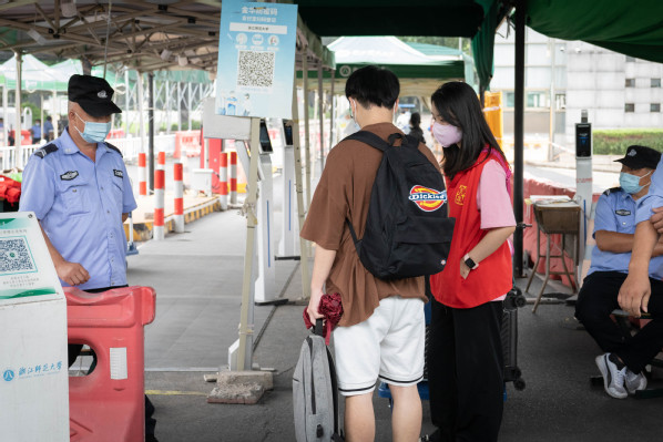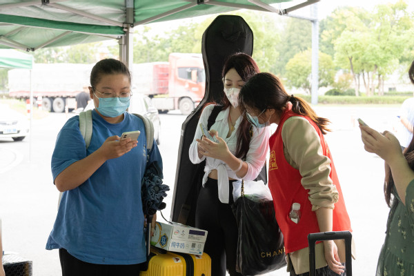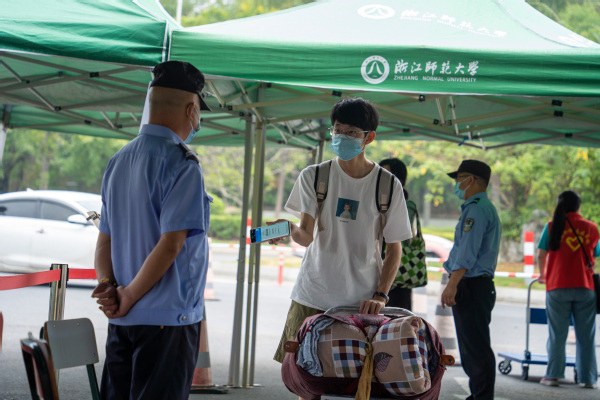 学生通过返校码审核后进校。浙师大融媒体中心 李丰成 摄