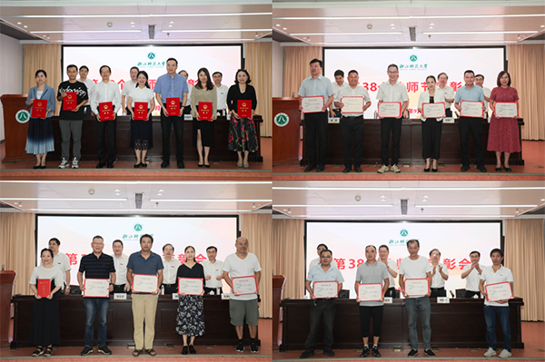 迎接党的二十大,培根铸魂育新人。9月8日,浙江师范大学举行第38个教师节表彰会,为全国教材建设先进个人、全国先进老干部工作者、首届浙江省教书育人楷模、浙江省第五届最美教师、第七届全省高校“最受师生喜爱的书记”、浙江省优秀教职工先进事迹宣传点赞人物、2021年浙江省教学成果奖获得者、校级综合奖获得者等获奖代表,以及从事教育工作三十周年的教工进行表彰。浙师大党委书记郑孟状、党委副书记邵国平、副校长张根福出席表彰会,浙师大党委副书记朱坚主持会议。