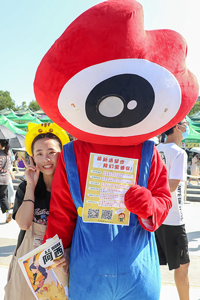 浙师学子与社团文化节招新人偶合影。浙师大融媒体中心 曾雨欣 摄