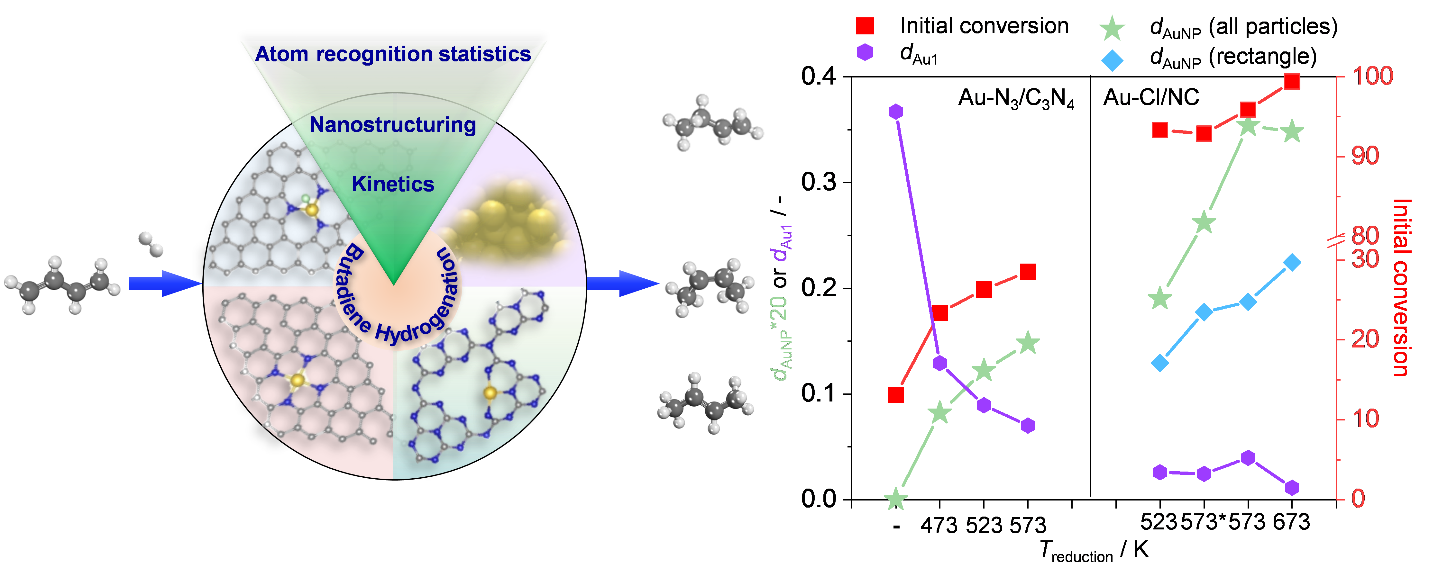 近日,浙江师范大学杭州高等研究院应用催化团队研究员丁云杰、校聘教授林荣和、助理研究员牟效玲,与中科院大连化物所研究员刘伟团队合作,在负载型黄金催化二烯烃选择性加氢反应中的活性位点识别研究方面取得重要进展,提出了一种利用电子显微学与人工智能技术相结合、描绘负载型金属催化剂中金属全尺寸分布的方法,并首次提出将电镜大数据统计获得的金属颗粒表面暴露密度作为催化活性的描述符。