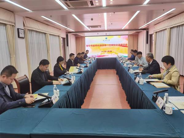 11月2日下午,海宁市副市长徐洪华一行来浙师大洽谈教育合作。浙师大校长蒋云良、副校长钟依均出席会议。