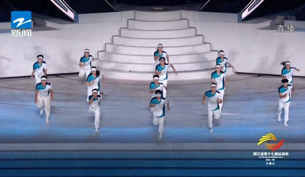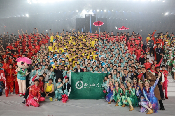 包括浙师大体育学院体育教育222班包凯文在内的80名体院学子出演了第四篇章《征程奋进》中的“搏击操”,包凯文说这是自己第一次接触搏击操,一切都是从零开始。“作为浙江省培养的运动员,能以另一种身份参与到省运会中来,我觉得非常有意义。”包凯文无比激动地说。
