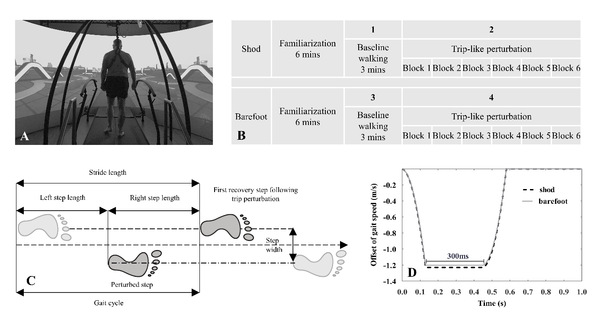 作为任务特异性的训练方式,基于扰动的步态平衡训练近年来被科研人员和临床医生引入到老年人、步态异常患者等易跌人群的防跌倒训练中,并产生了积极效应。研究人员基于步态实时分析交互实验室编程开发自动化扰动应用程序,以触发人体在行走过程中前向减速,模拟日常环境中类似于绊倒的扰动。研究重点关注影响步态稳定性的外在风险因素,即鞋类条件。