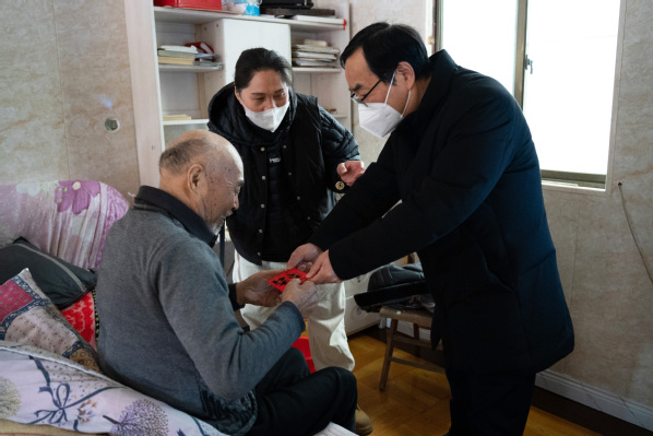 “好好休养,保持愉快的心情,祝您早日康复!”在瓦窑头村汤忠林老人家,张根福紧握着老人的双手,详细询问老人的饮食起居、家庭收入、生活中遇到的实际困难等情况,鼓励他乐观面对生活,并送上粮油等慰问品。在大田乡党委书记徐平陪同下,每到一户,张根福都亲切询问困难村民的生活状况,鼓励大家合理膳食,增强抵抗力,增强信心,勇敢面对生活,并为大家送去新春的祝福。