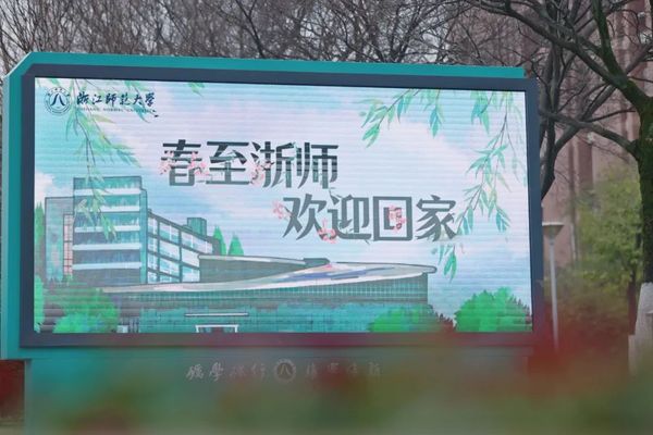 春回大地,万象更新。2月11日,浙江师范大学迎来春季开学日,阔别校园多日,浙师学子怀着激动的心情返校,开启充满希望的新学期。为了迎接学生返校,学校门口电子屏推出“春至浙师,欢迎回家”的海报格外温馨,初阳公寓也精心装饰了一颗许愿树,期待同学们在2023年能够“兔”飞猛进,大展宏“兔”。