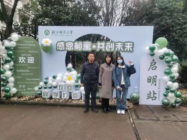 火车出站后,远远就看见醒目的指示牌——“浙江师范大学欢迎你”“接你回家”,这是我们心照不宣的默契。一路上,热心的志愿者忙前忙后,引导指路、搬运行李。