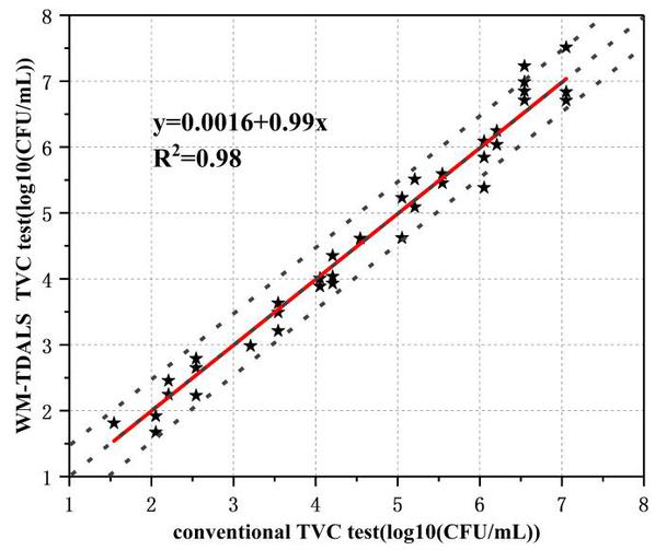 WM-TDLAD技术和传统方法(ISO 4833:2013)测定TVC的相关性。