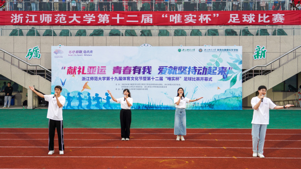 宣誓完毕后,林一钢宣布浙师大第十九届体育文化节暨第十二届“唯实杯”足球比赛正式开幕。