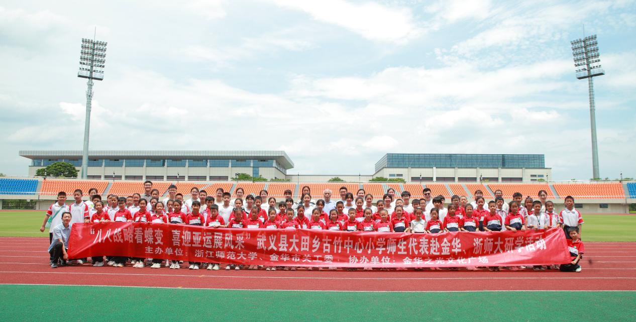 本次研学活动由浙江师范大学、金华市关工委主办。参加研学活动的同学们参观了金华市体育中心、科技馆、浙江师范大学轨道交通产教融合基地、非洲博物馆等地。自从2003年6月结对帮扶以来,浙师大原校党委书记毛华岳总会在六一节前带着一批学生到浙师大、金华市区参观学习。按照他的设想,学校学生不到300人,每年带一批,在小学6年的时间里,每一位孩子都能至少轮到一次。