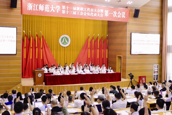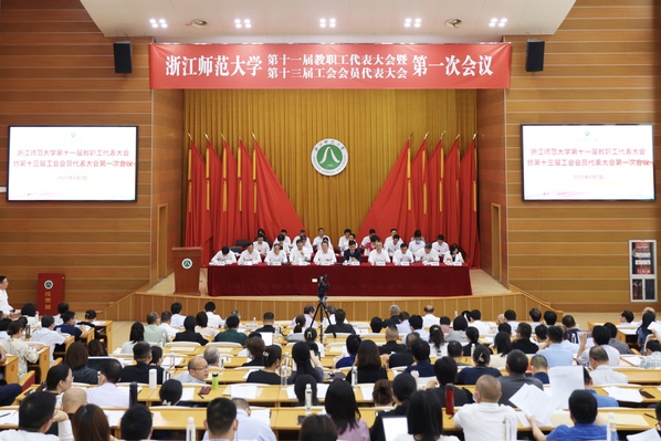 6月7日,浙江师范大学第十一届教代会暨第十三届工代会第一次会议在行政中心报告厅举行。浙江省总工会二级巡视员、省教育工会主席王玉庆,金华市总工会党组书记、 副主席施文臻应邀出席会议,浙师大党委书记郑孟状发表讲话,校长蒋云良作学校工作报告,党委副书记邵国平、朱坚先后主持会议。
