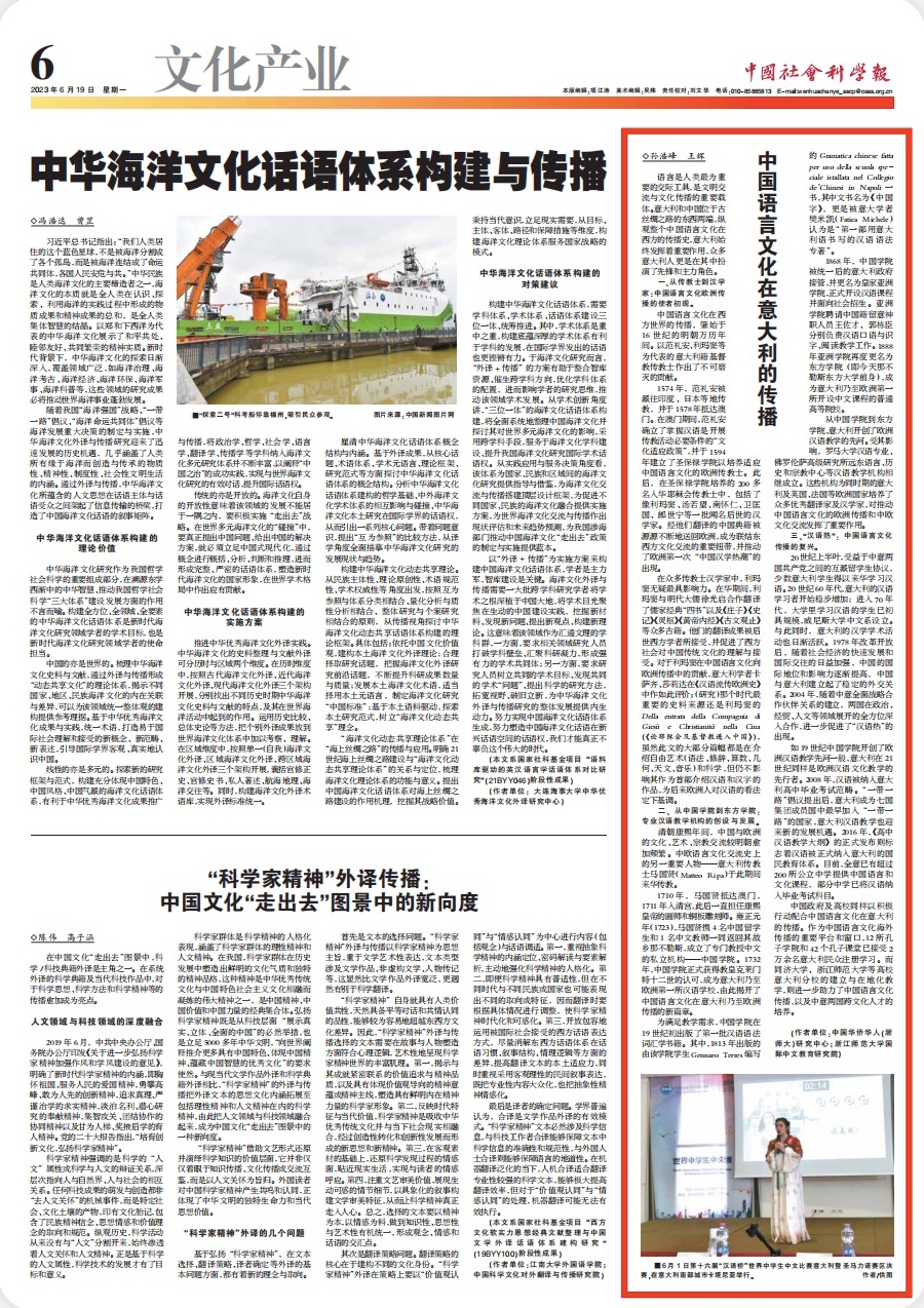 6月19日,《中国社会科学报》刊发浙江师范大学国际中文教育研究院王辉教授与孙浩峰老师的署名文章《中国语言文化在意大利的传播》。