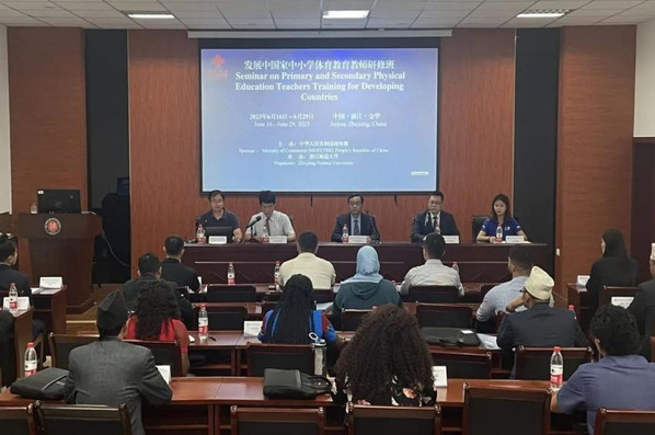 6月29日,由中华人民共和国商务部主办,浙江师范大学承办的发展中国家中小学体育教师研修班在浙师大结业。14天的研修,体育学院设计出多元化、立体化研修课程体系。学校体育、竞技体育和休闲体育多元交融,城市、县镇和乡村体育元素立体呈现,为学员擘画出浙江体育事业发展蓝图,提供了一流的学习场景和研修环境。