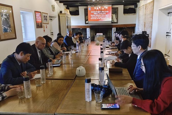 在开普敦大学,蒋云良一行与开普敦大学中文系主任马跃教授和开普敦大学孔子学院教师座谈交流。马跃教授介绍了南非和开普敦大学中文教学整体发展情况,取得的成绩和存在的问题等。双方还就中文教学合作、教师交流等研讨交流。