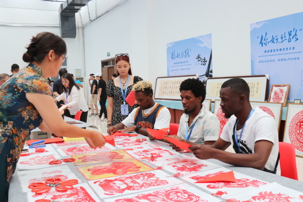浙师大留学生体验剪纸。浙师大融媒体中心 程松泉 摄