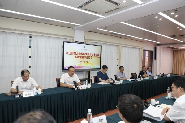 7月28日上午,浙江师范大学数智文教与社会发展实验室论证会在行政中心多功能会议室召开。浙师大党委书记郑孟状出席论证会并致辞,浙江省教育厅高教处副处长廖波出席并讲话。专家组组长、省社科联名誉主席、浙江工商大学原党委书记蒋承勇,省社科联原副主席邵清,浙江工业大学原党委副书记肖瑞峰,杭州电子科技大学原党委副书记陈畴镛,武汉大学人文学院原院长赵世举,浙师大副校长、党委委员张建珍出席论证会,浙师大校长蒋云良主持。