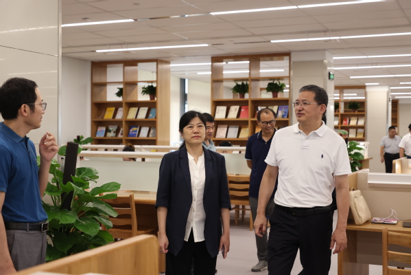 王健一行来到图文信息中心。浙师大融媒体中心 应琳歆 摄