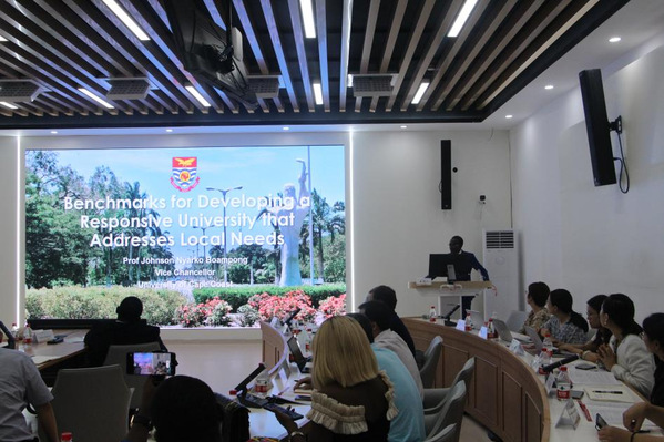 9月1日,在中非大学联盟交流机制研究院成立之际,中非教育圆桌研讨会在浙江师范大学举办。非洲大学协会秘书长奥卢索拉·奥耶沃勒、加纳海岸角大学校长约翰逊·博安蓬,浙江师范大学原副校长楼世洲,非洲研究院院长、国家级领军人才刘鸿武,教育学院院长黄晓、国际与比较教育研究院副院长万秀兰等出席会议,会议由教育学院王占军副院长、陈明昆教授先后主持。