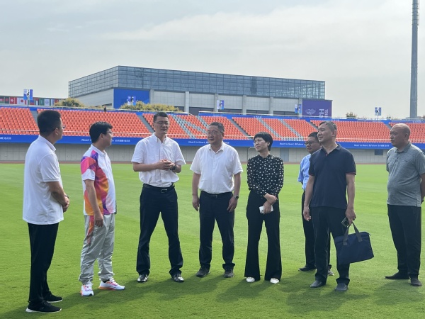 浙江省纪委副书记蔡旭昶一行实地调研浙师大东体育场。浙师大融媒体中心 王梦繁 摄