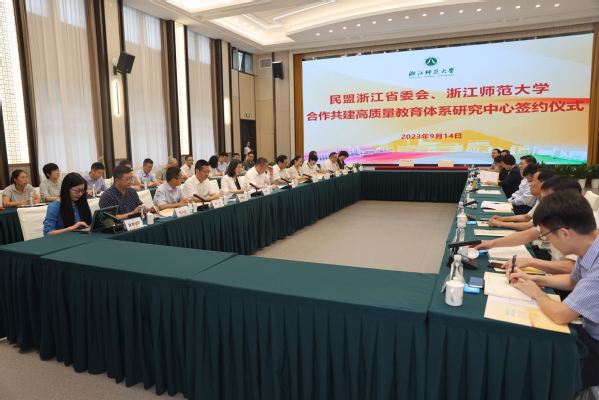 民盟浙江省委会、浙江师范大学合作共建高质量教育体系研究中心签约仪式现场。浙师大融媒体中心 姜雯静 摄