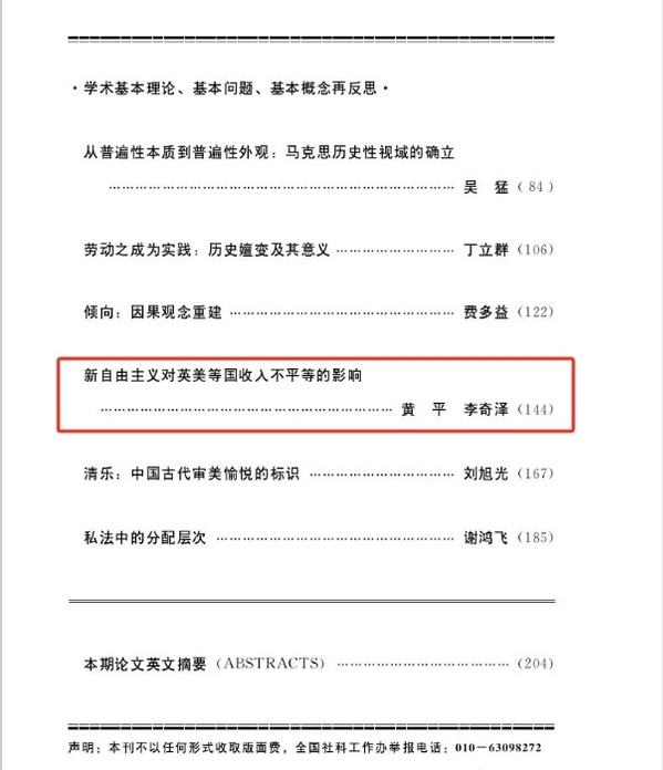 近日,浙江师范大学边疆研究院教授黄平与李奇泽合著《新自由主义对英美等国收入不平等的影响》一文在顶级期刊《中国社会科学》2023年第9期发表。