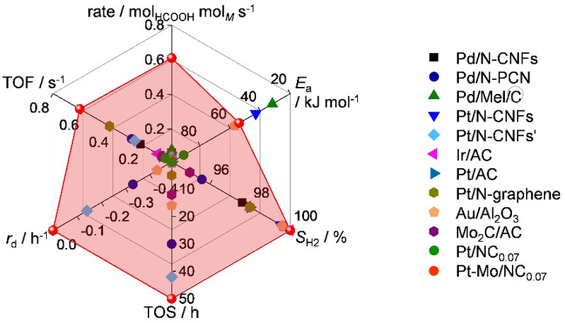 甲酸是一种极具应用潜力的液态化学储氢介质,如何实现氢的快速释放同时避免过程中生成CO是该领域的研究热点。甲酸气相分解制氢在热力学上具有优势,但存在反应温度过高、催化剂活性低且易失活等不足。如何在原子尺度上对催化剂结构进行精准设计、实现甲酸分子的定向活化极具挑战。