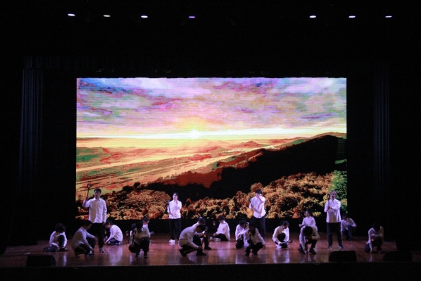 “野火烧不尽,春风吹又生”,首尾相照,令人动容。灯光色彩变换,掀起情感波澜,教育学院《您的模样》以舞蹈与视频融合的形式向观众描绘着那些远赴千里、为大山孩子点亮梦想的支教老师最美的模样。
