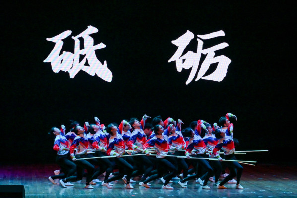 体育学院的群舞《砥砺》展示了运动健儿们的团结一心与坚韧毅力,永不言败是运动员们坚守的信条,赛场上挥汗如雨是拼尽全力的真实写照。
