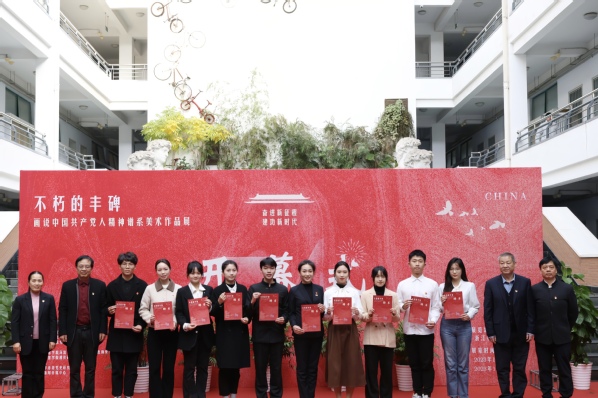 “吾有所爱,其名华夏”“党史之大美,今人共守”……一个个五角星上饱含深情的话语凝聚成为一道展现红色精神的厚重篇章。12月6日下午,《不朽的丰碑——画说中国共产党人精神谱系》美术作品展开幕式于18幢一楼美术馆举行。浙师大党委书记郑孟状,党委副书记邵国平,党委委员、组织部部长吕迎春,党委委员、宣传部部长朱毅峰,省教育厅宣教统战处调研员葛红敏,金华市新闻传媒中心党委书记、主任方青云,党委委员、副主任陈建飞出席活动。