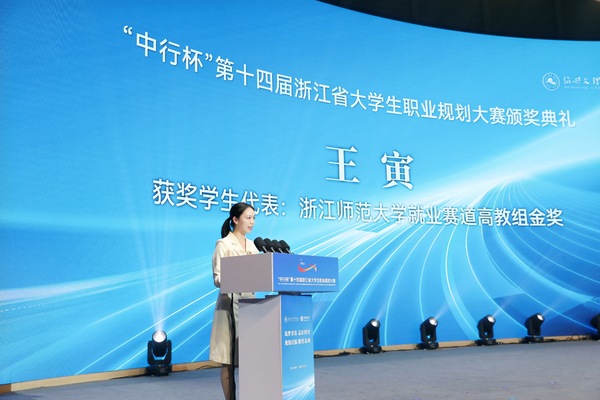 浙师大王寅同学作为选手代表在颁奖典礼上发言。图片来源 学生处