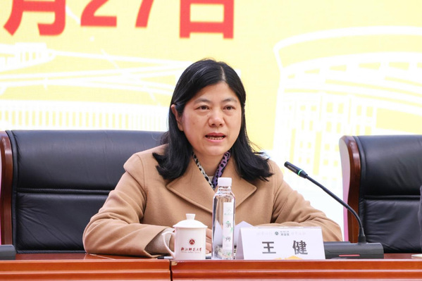省委教育工委委员、省教育厅党组成员、省纪委省监委派驻省教育厅(省委教育工委)纪检监察组组长王健讲话。浙师大融媒体中心 应琳歆 摄