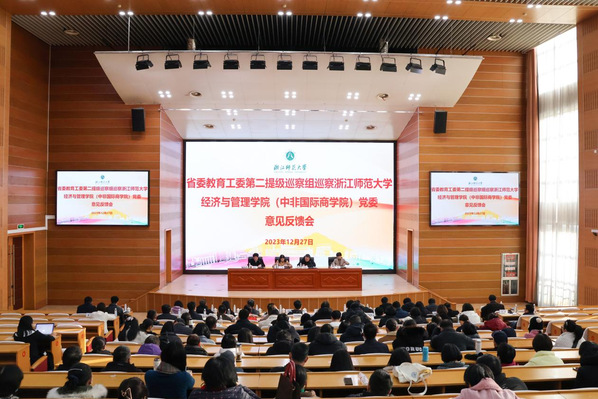 省委教育工委第二提级巡察组全体成员,浙师大各相关职能部门负责人,经济与管理学院(中非国际商学院)全体教职员工,近五年调离、退休的班子成员等参加会议。